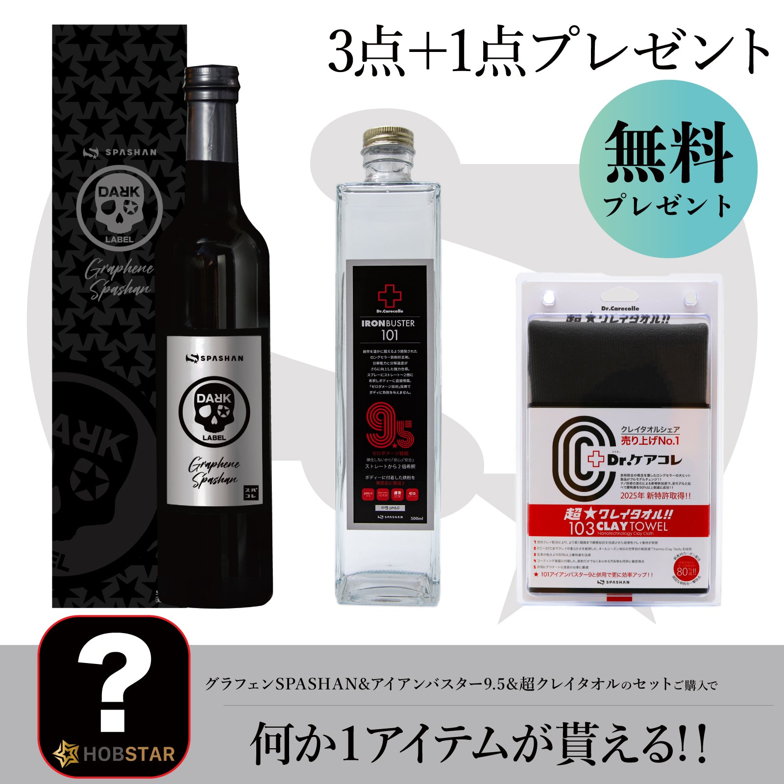 グラフェンスパシャン+101アイアンバスター9.5+103超クレイタオル+洗車用品プレゼント