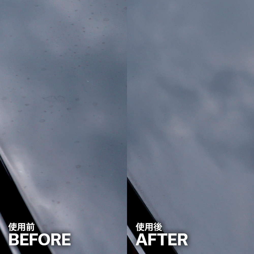 ・洗車では落とせない雨ジミ、イオンデポジット、水垢、ウォータースポット、シリカスケール汚れなどを一発除去。