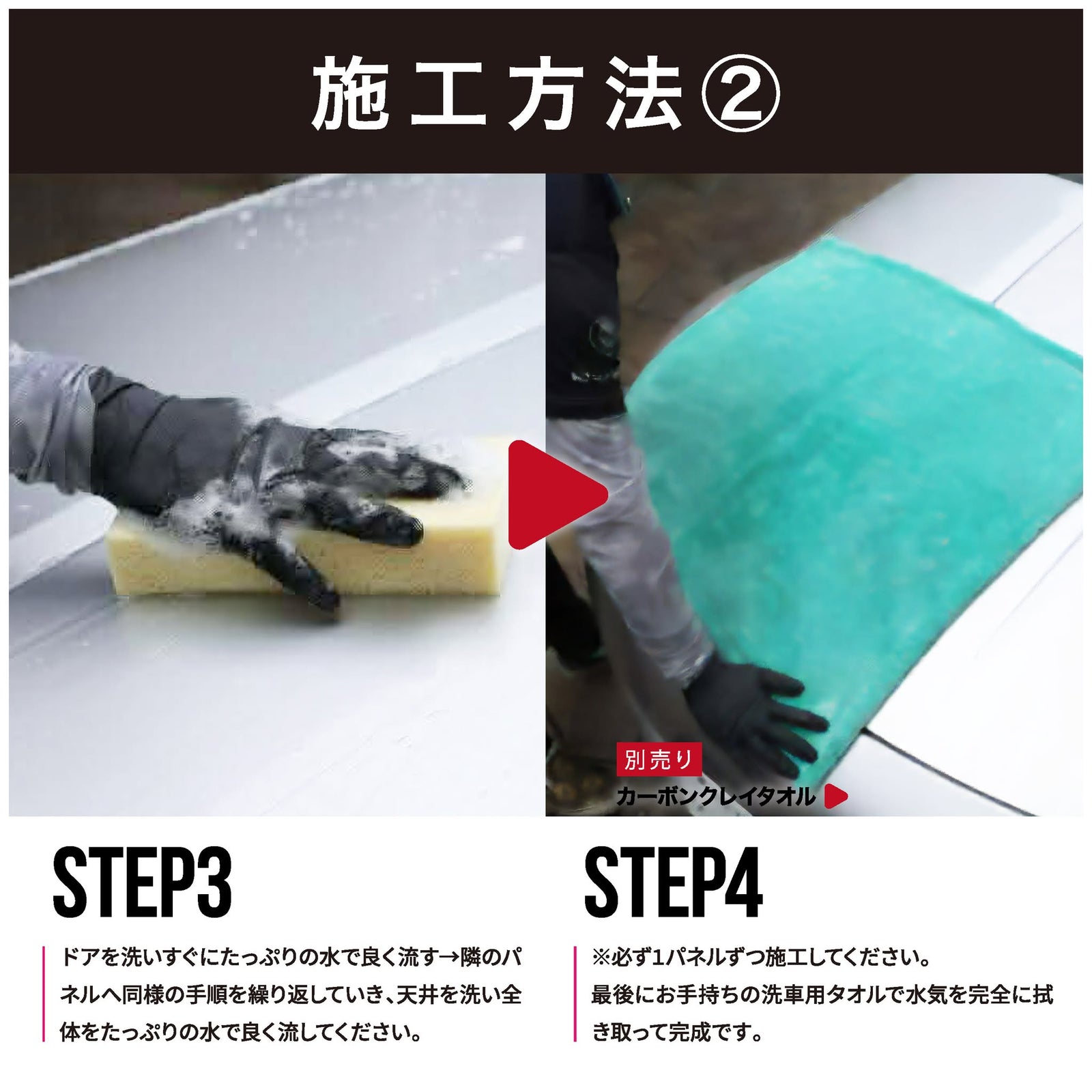 (2)カーボン+セラミックハイブリッドレイヤー カーボンで高光沢の為のクレンジングでベースを作り、セラミックでコーティングする「二重レイヤー構造」を採用。 1回のコーティング作業で、同時にクレンジングをする全く新しい発想です!
